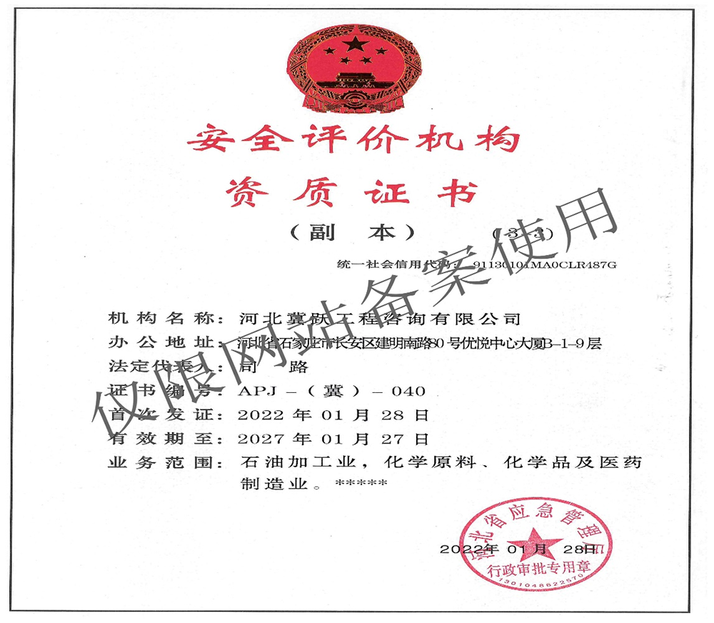 • 安全評價機(jī)構(gòu)資質(zhì)證書